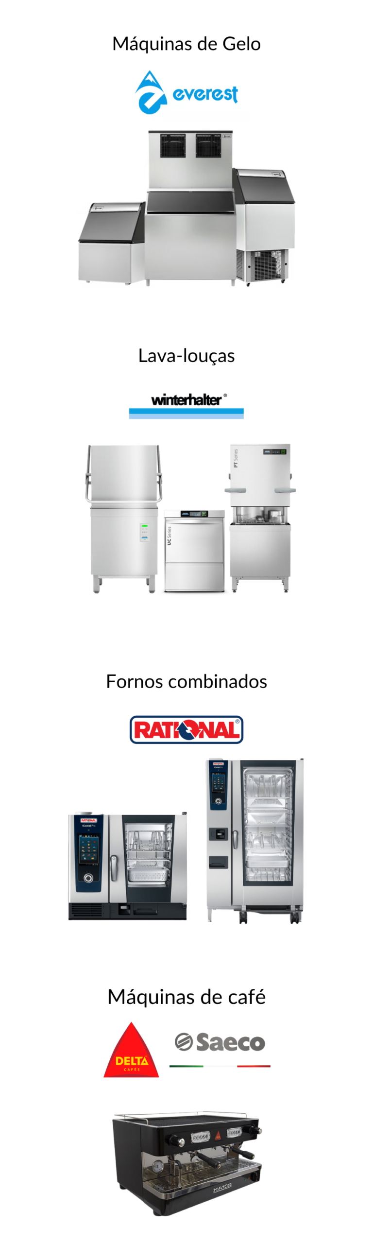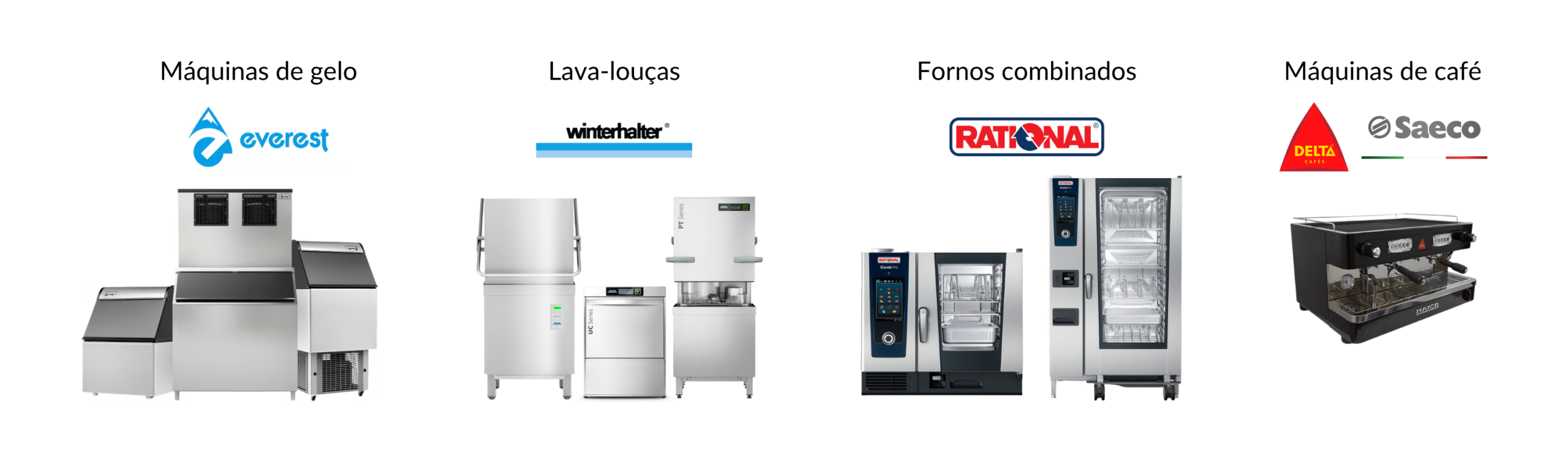 Soluções das melhores marcas do mercado para produção de gelo, lava-louças industriais, fornos combinados e máquinas de café para estabelecimentos.